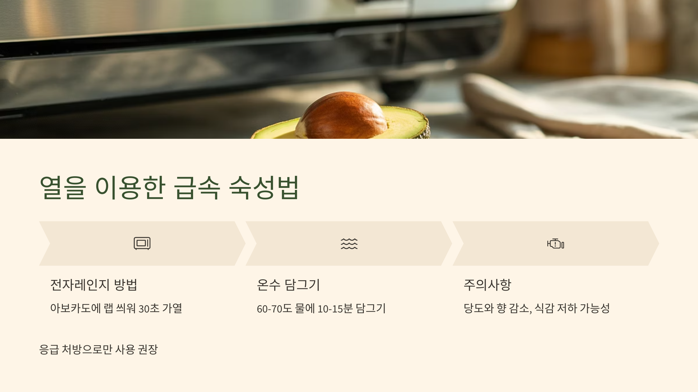 전자레인지나 뜨거운 물로 과일을 데우면, 일시적으로 식감은 부드러워지지만 자연 숙성과는 다릅니다.
