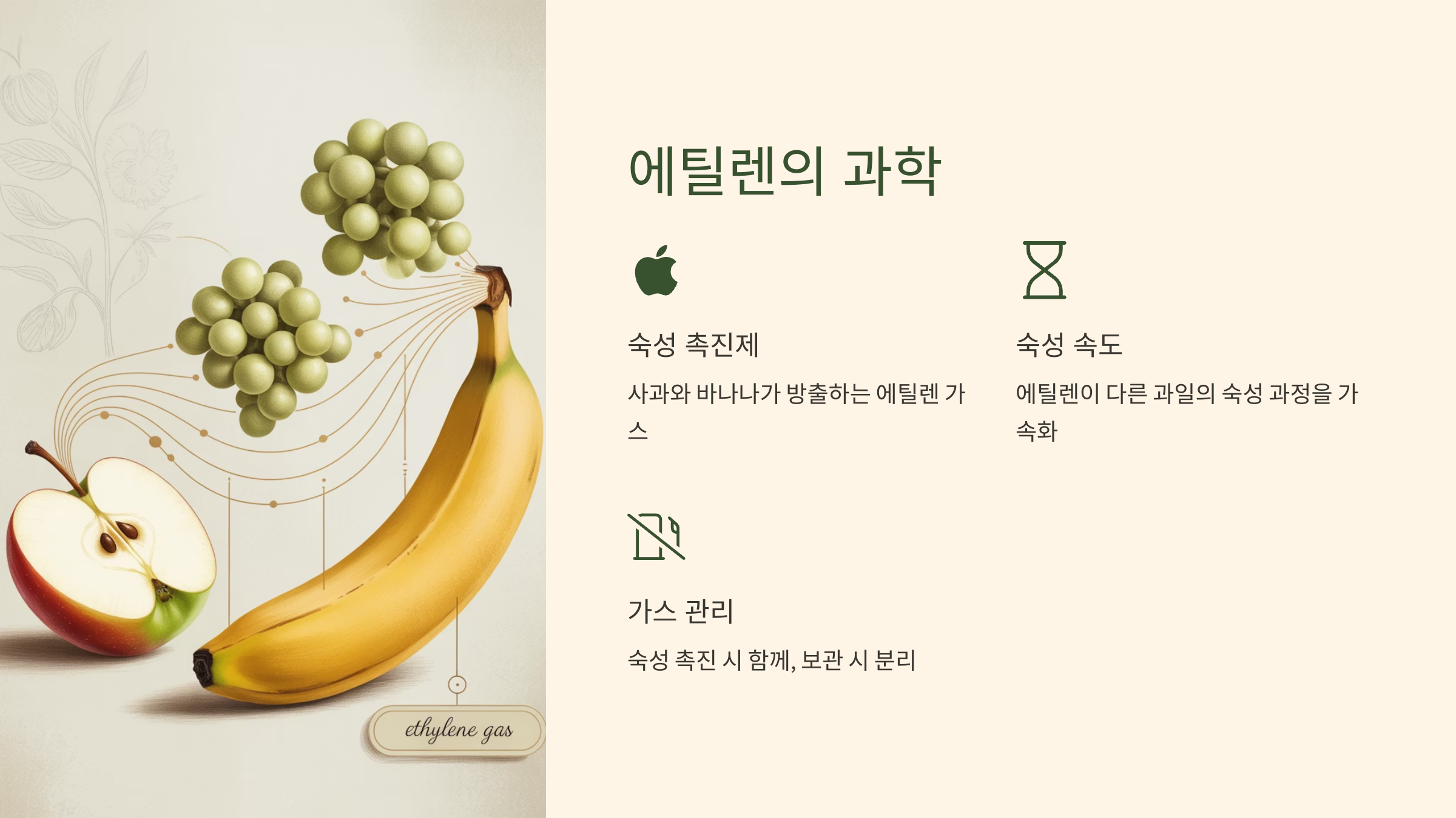 이 가스는 다른 과일의 숙성을 빠르게 촉진시키는 역할을 하죠.