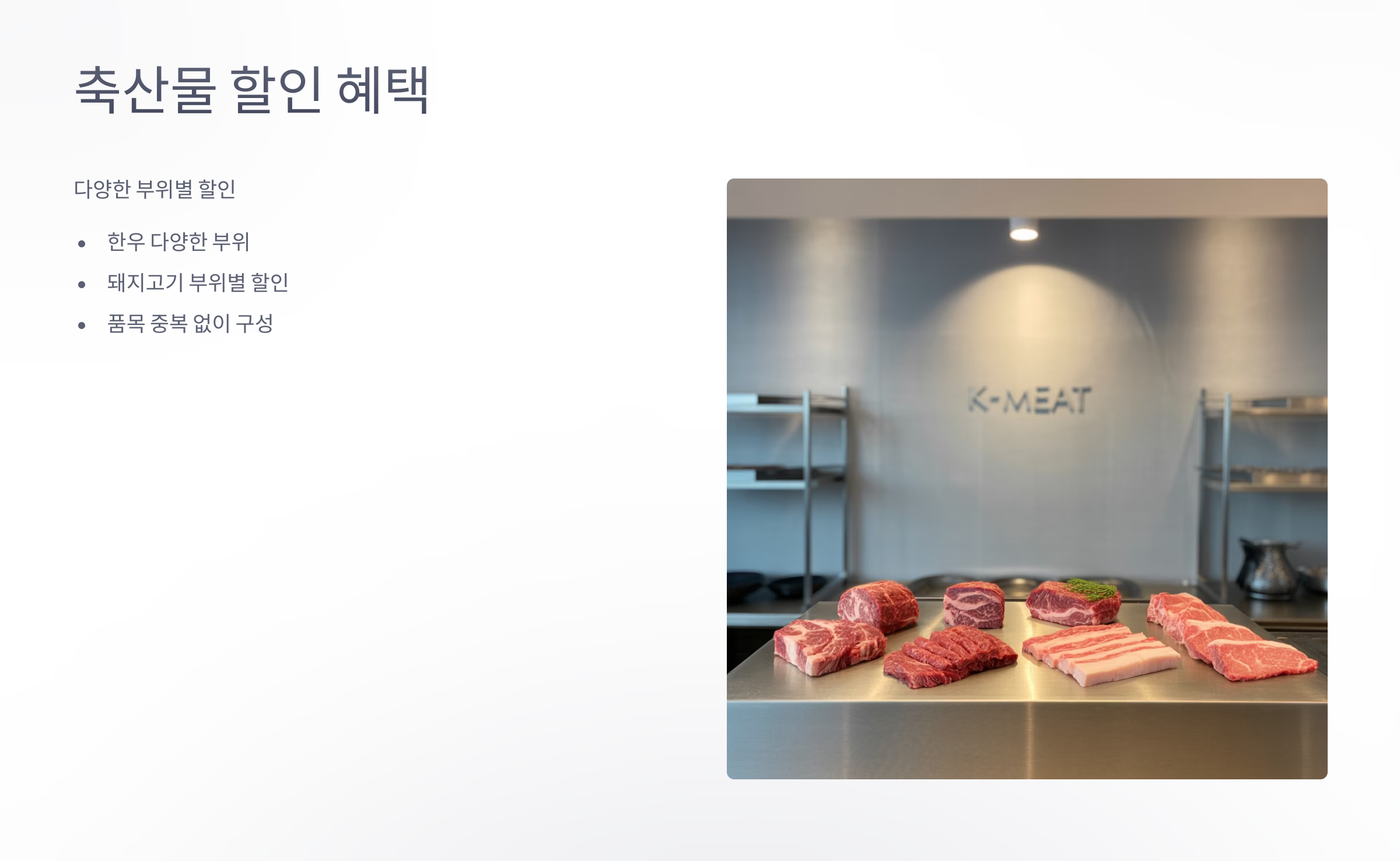 🥩 축산물 할인은 어떻게? – 품목 중복 없이 다양하게 구성