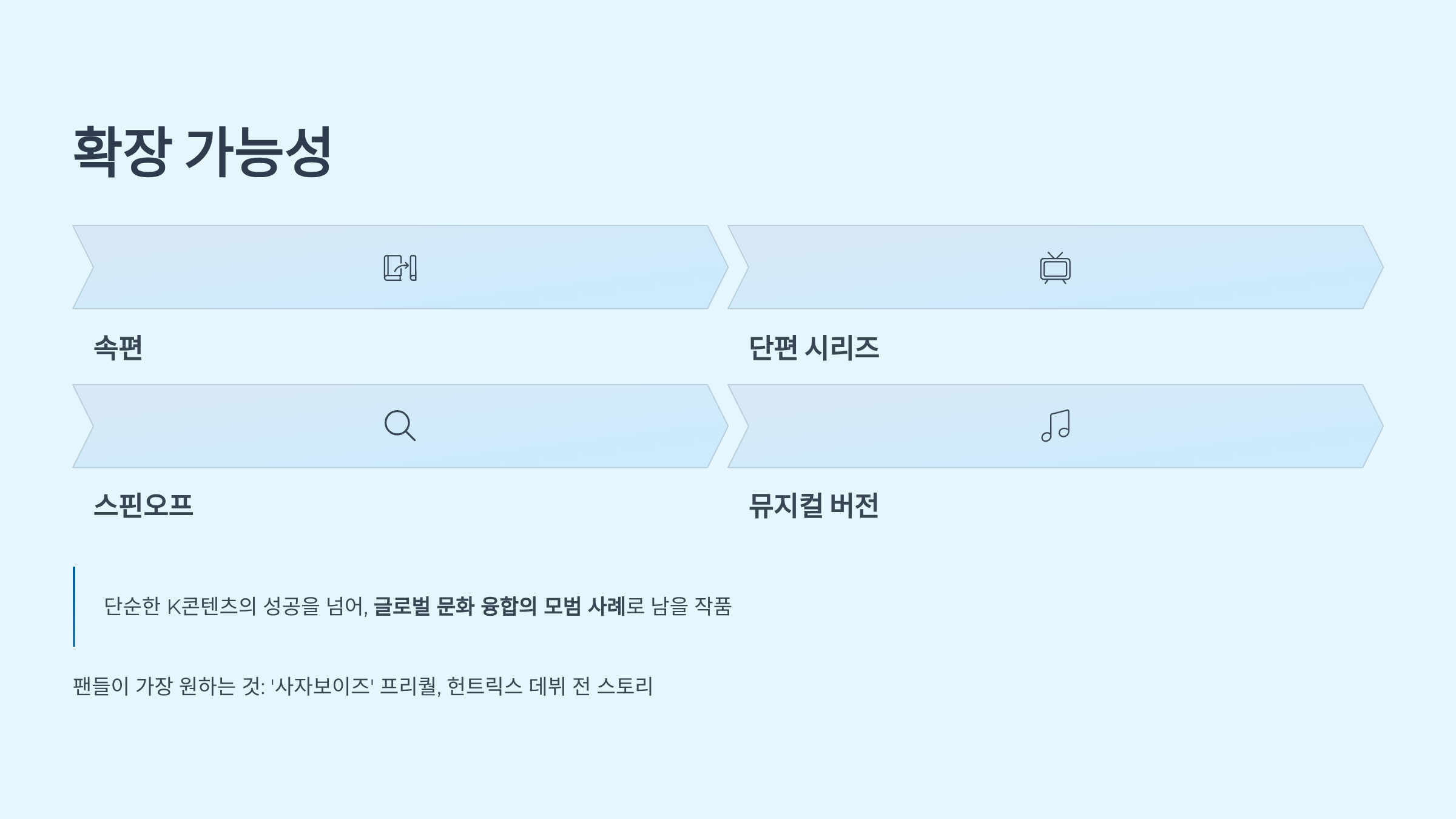 | 확장성 | 굿즈, 콘서트, 시리즈로 연결 가능성 |