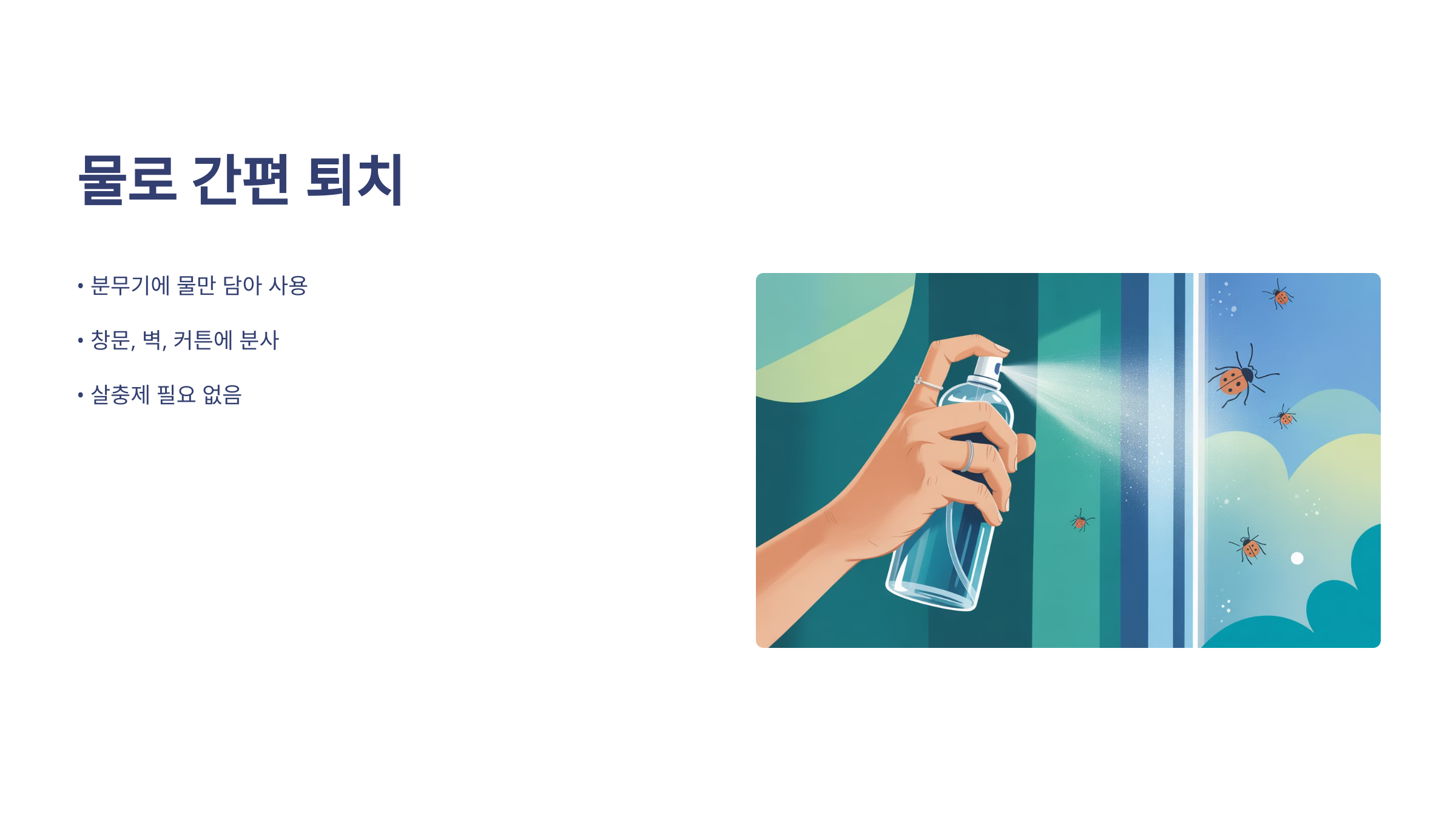 | 물 분무 | 벌레 날개 젖게 하여 자연 탈락 유도 |