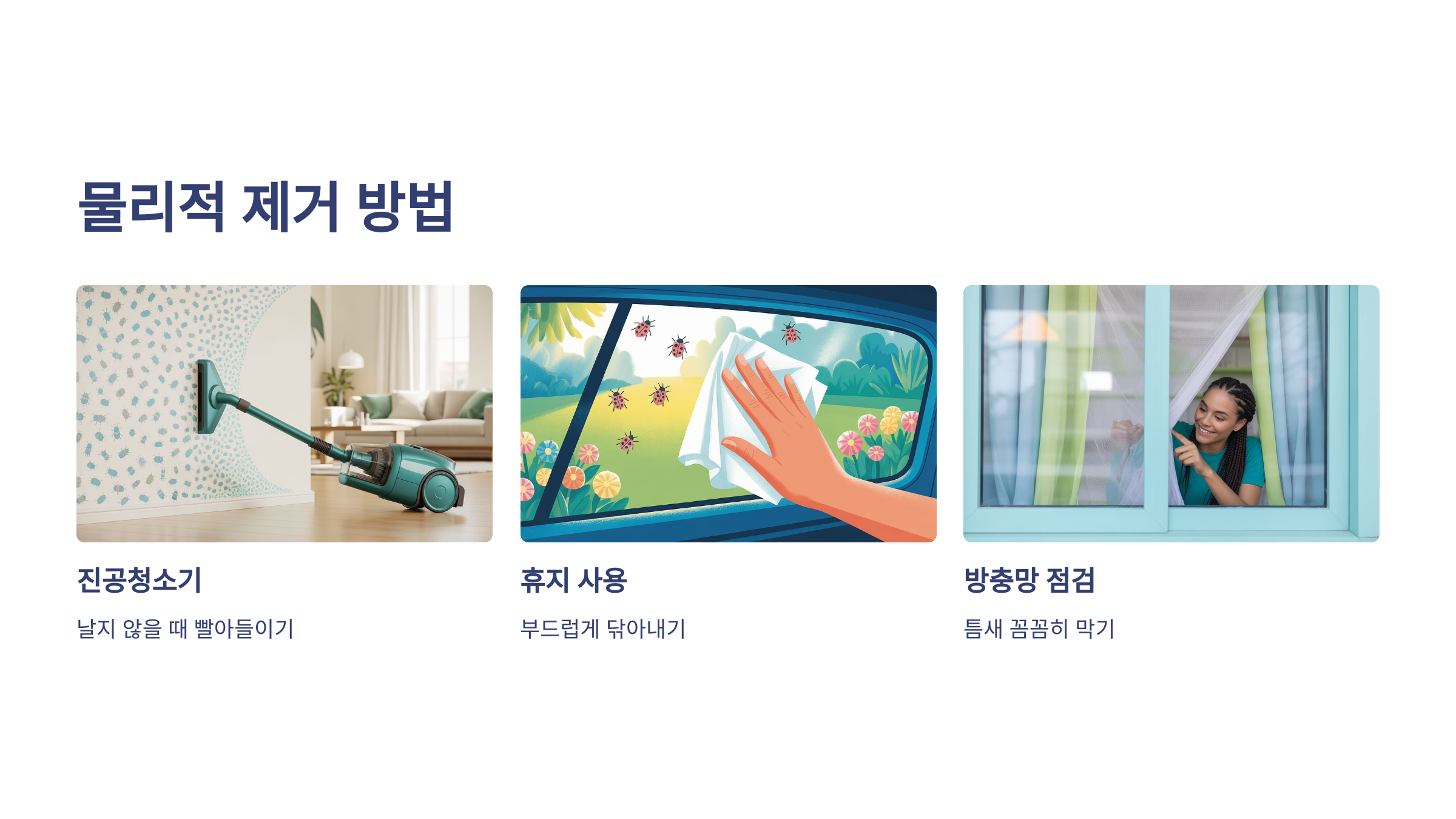 | 청소기·휴지 | 직접 물리적으로 제거 |