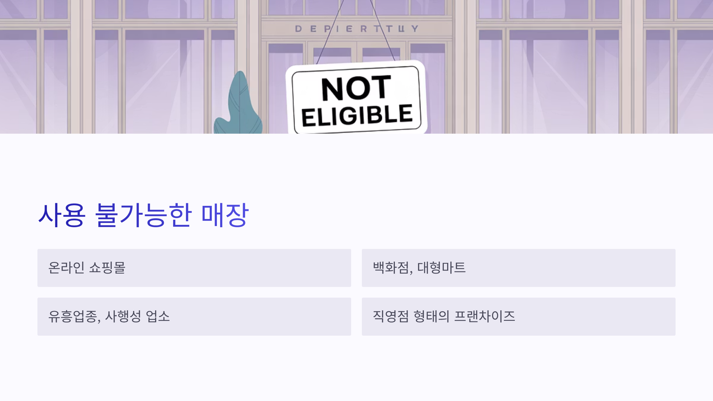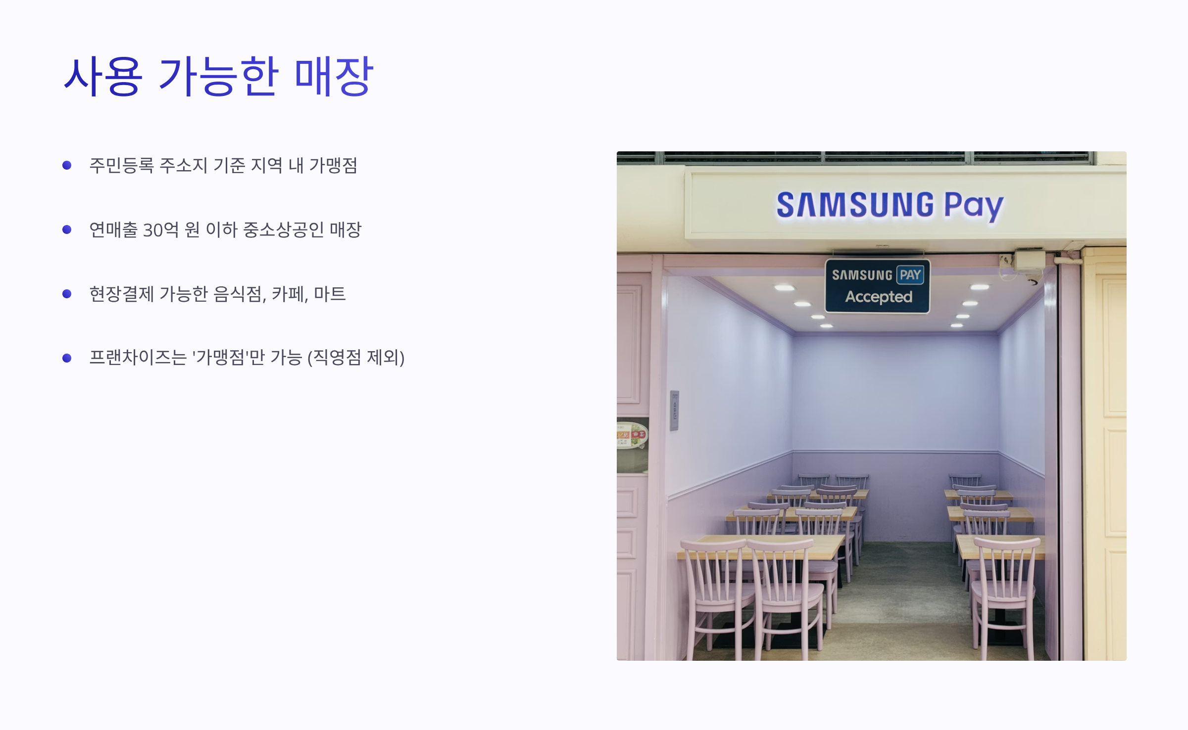 | 사용조건 | 지역 내, 연매출 30억 이하 가맹점에서만 가능 |