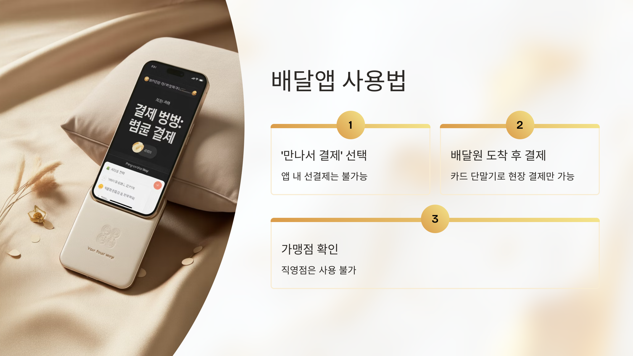 🛵 배달앱에서 사용하는 법 – ‘만나서 결제’가 핵심!