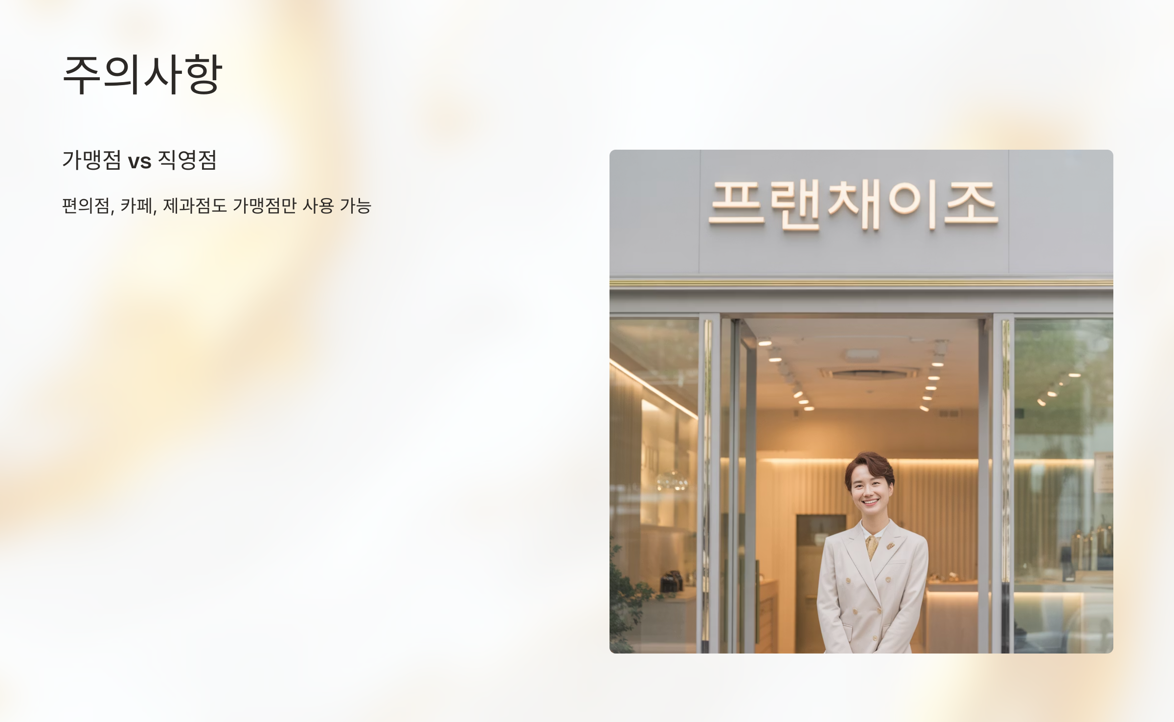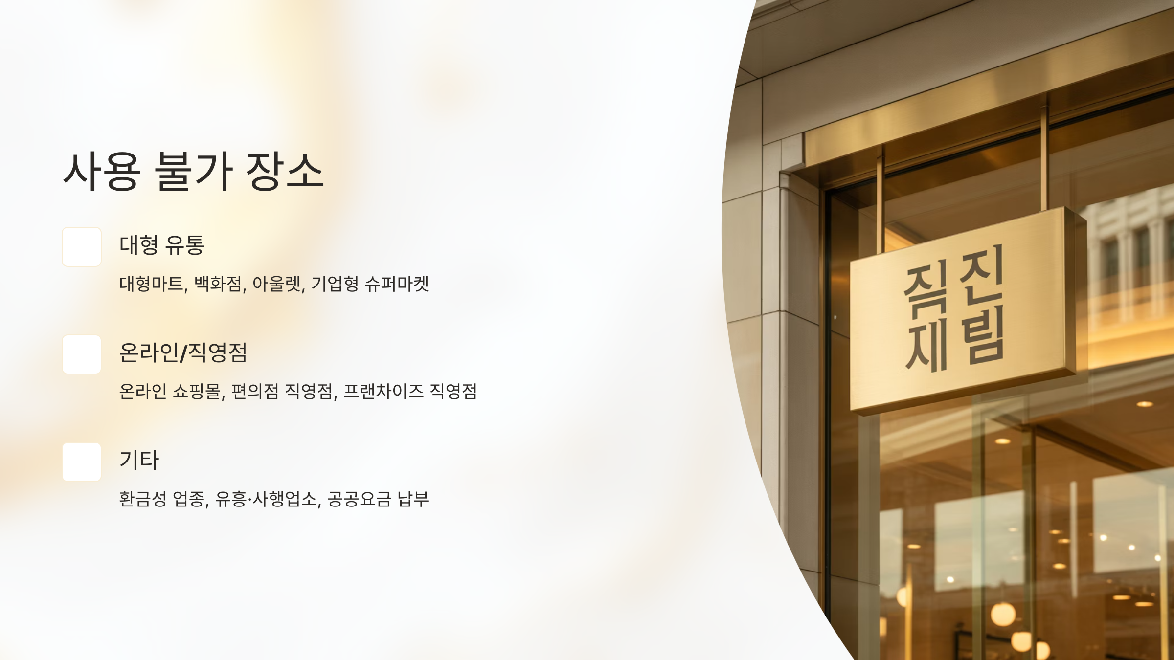 📌 주의: 편의점, 카페, 제과점 등도 가맹점인지 직영점인지에 따라 사용 가능 여부가 갈립니다.