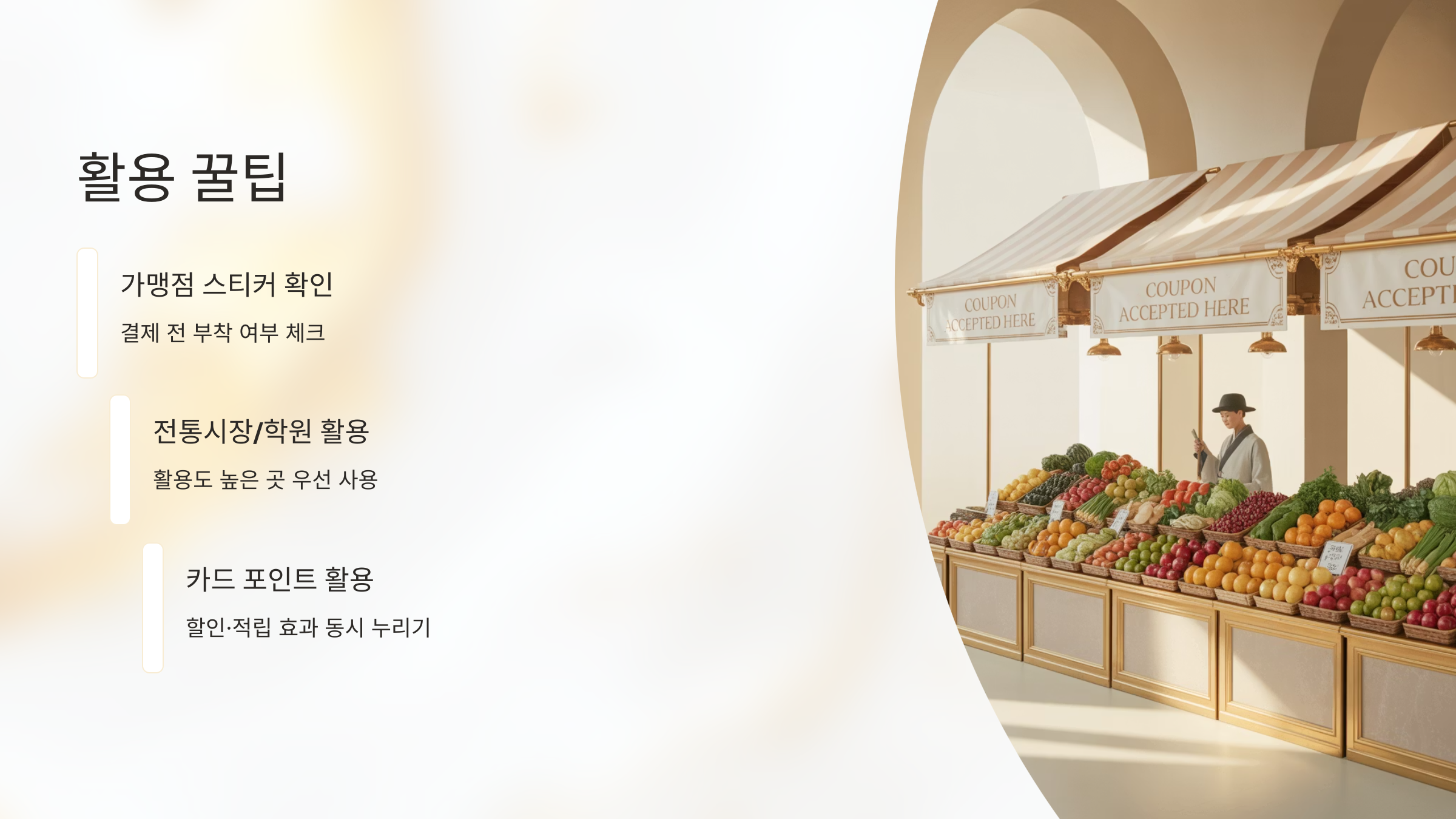 특히 온라인 결제나 대형 유통매장에서는 사용이 제한되므로, 지역 내 가맹점 위주로 계획적인 소비가 필요합니다.