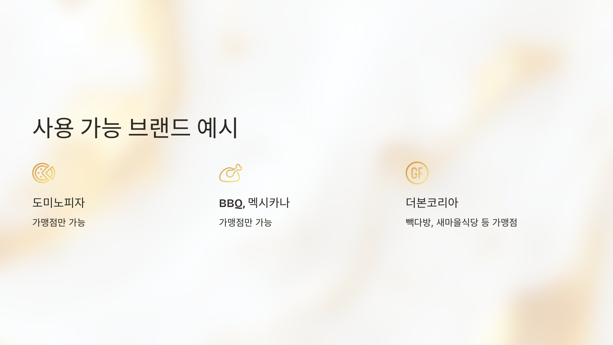 - 도미노피자, BBQ, 멕시카나, 더본코리아(빽다방, 새마을식당 등) 가맹점