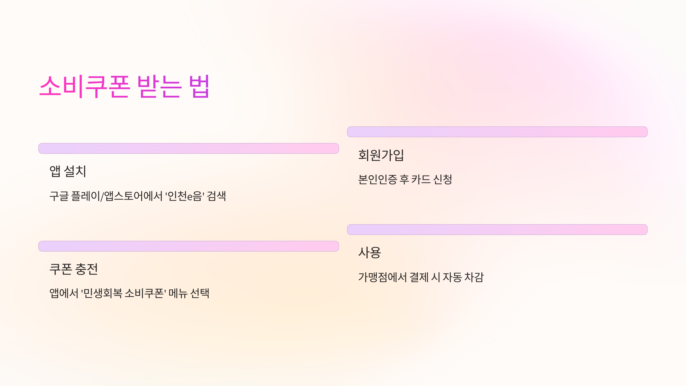 오늘 바로 인천e음 앱을 설치해 민생회복 쿠폰을 누려보세요.