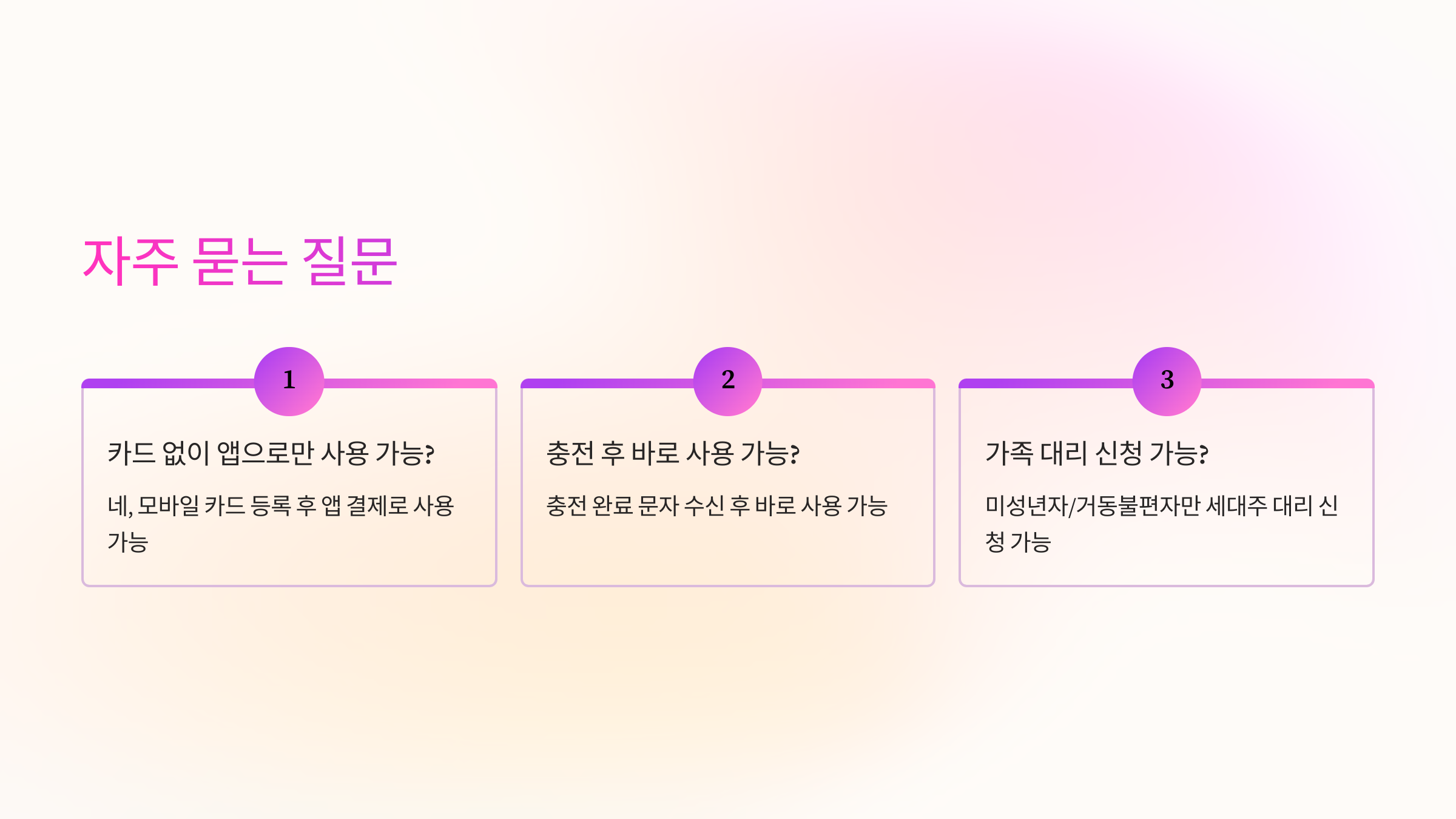 - 모바일 충전형 카드로 앱에서 바로 충전 가능