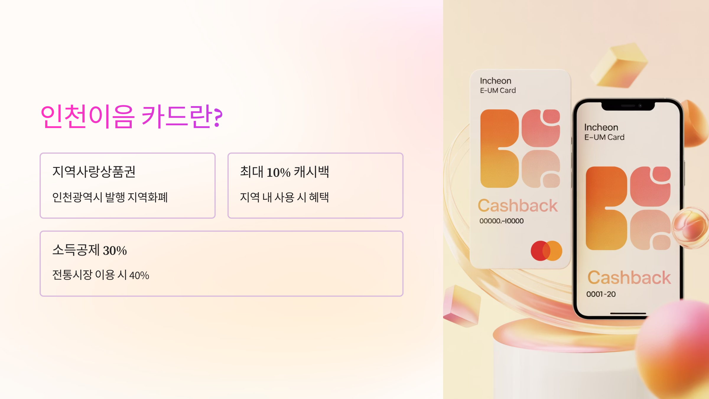 신용카드처럼 사용할 수 있으며, 소상공인 가맹점에서 사용 시 캐시백 혜택까지 받을 수 있어 인천시민들 사이에서 매우 인기 있는 결제 수단입니다.