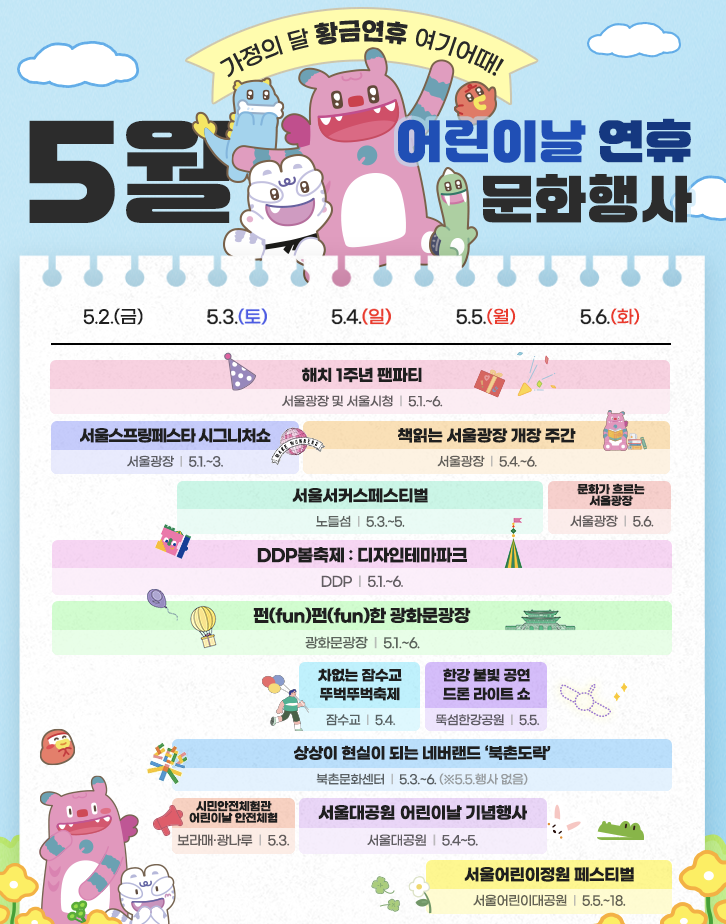 🎈 서울에서 사랑하는 아이와 함께 할 어린이날 행사를 찾고 있다면, 위 세 곳은 꼭 체크해 보세요!