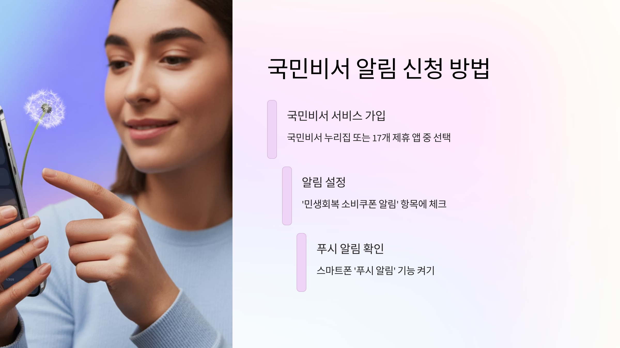 지금 바로 국민비서에 가입하고, ‘민생회복 소비쿠폰 안내’ 항목을 설정하세요.