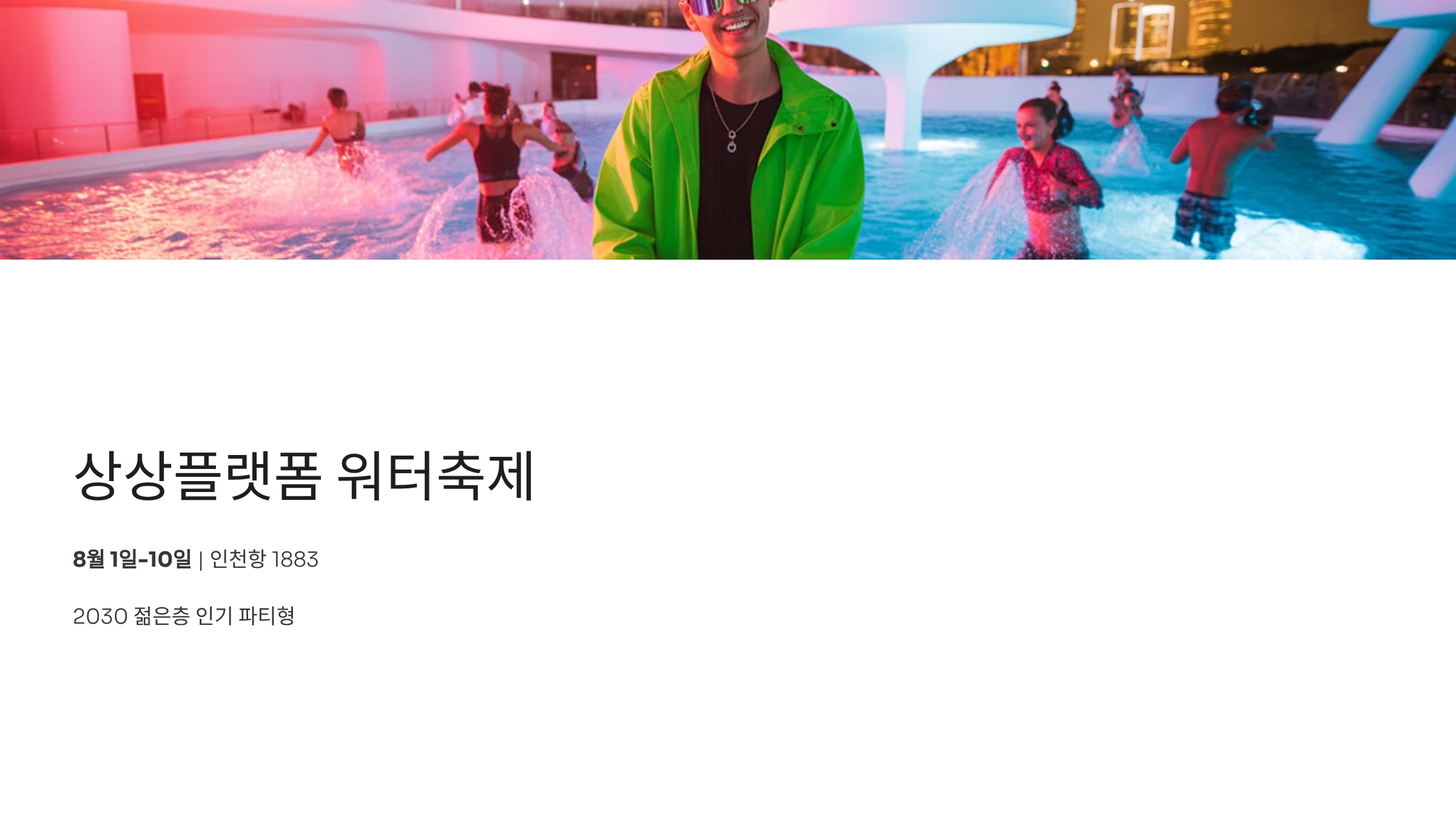 올해 새롭게 주목받는 행사가 바로 인천 상상플랫폼 워터축제입니다. SNS를 통해 홍보되고 있는 이 행사는 클럽 DJ와 함께 즐기는 파티형 워터축제로 20~30대 젊은 층에게 인기가 많습니다.