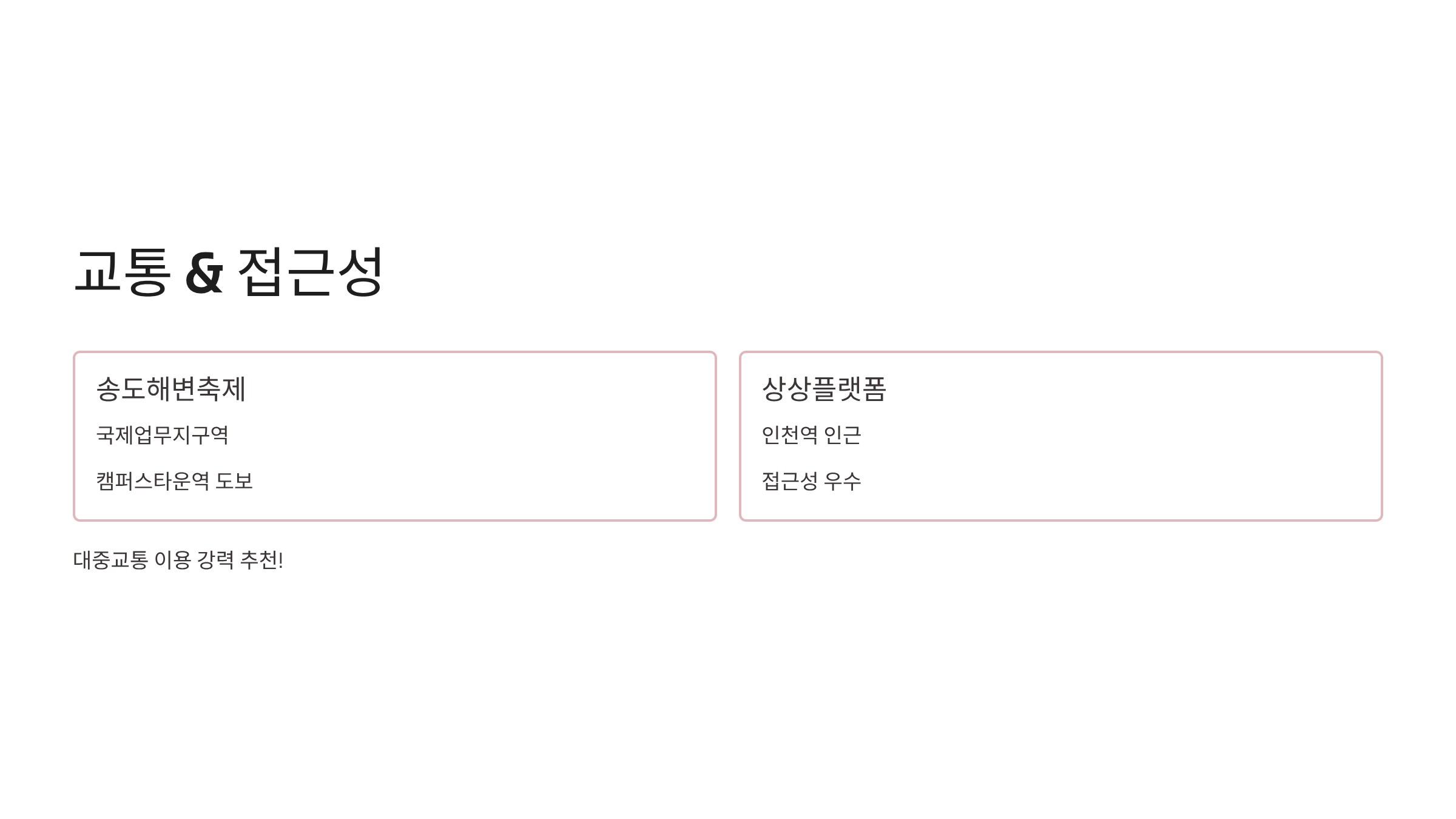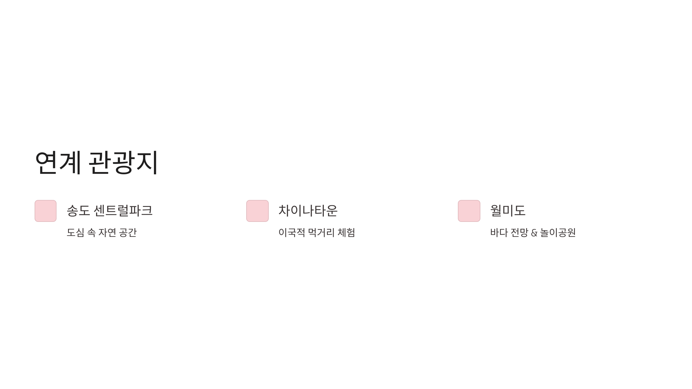 - 송도 센트럴파크, 트리플스트리트 등 인근 관광지와 연계해 하루 종일 즐길 수 있습니다.