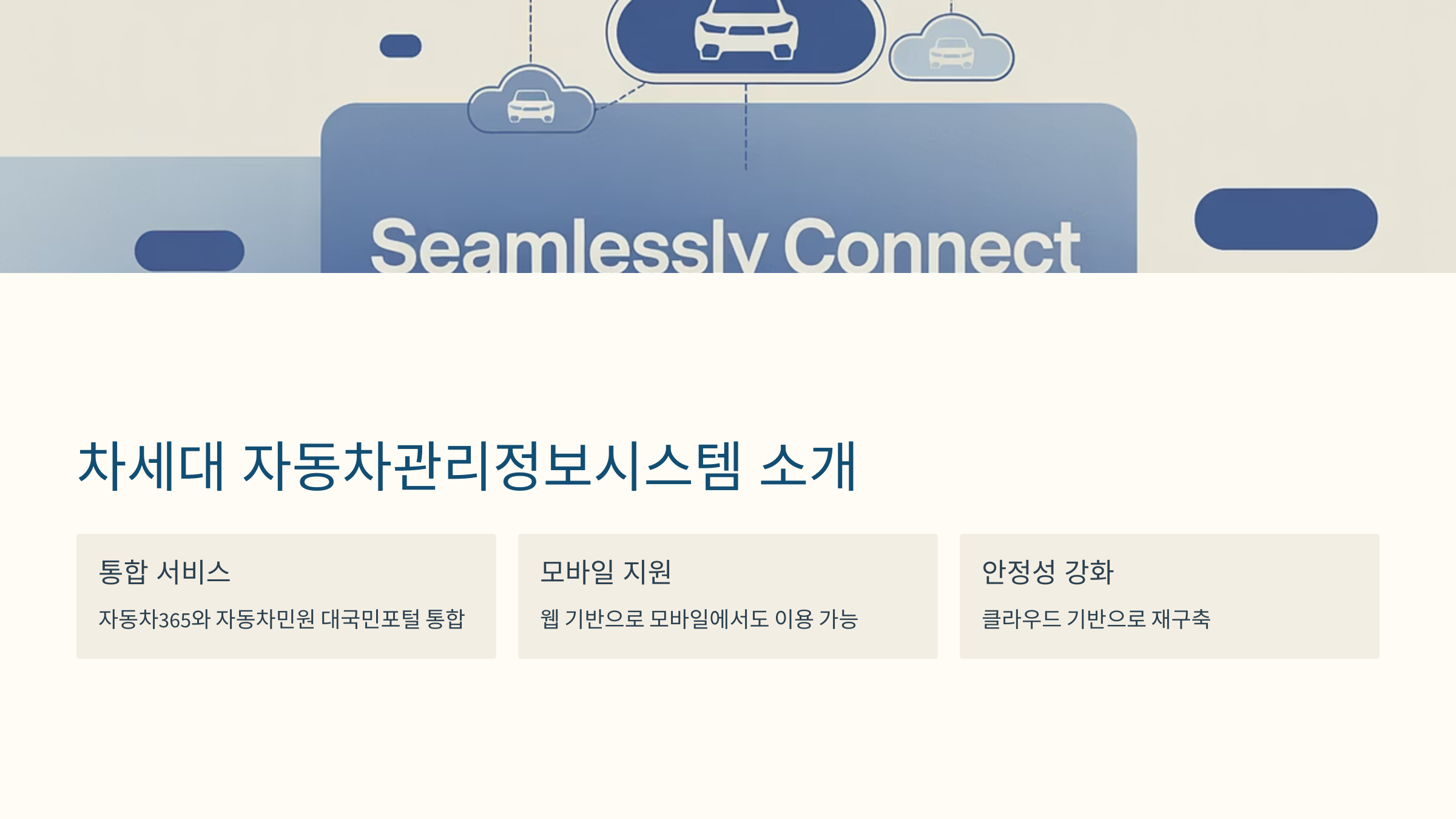 기존에는 ‘자동차365’와 ‘자동차민원 대국민포털’로 나뉘어 제공되던 민원 서비스가 이제는 하나로 통합되어, 모바일 환경에서도 웹 기반으로 편리하게 이용할 수 있습니다. 클라우드 기반으로 재구축되었기 때문에 서비스 안정성도 한층 강화되었습니다.