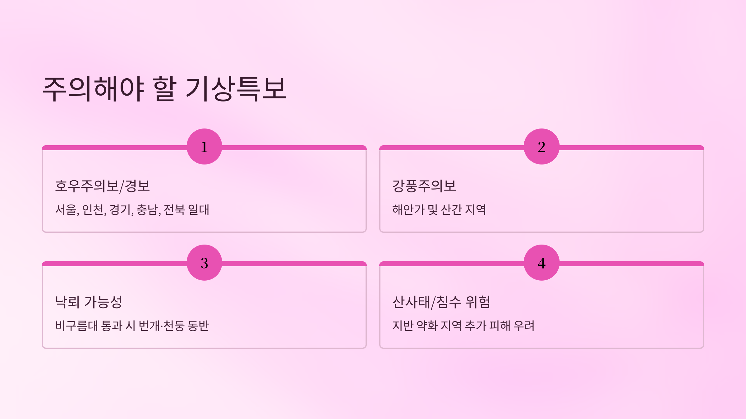 - 돌풍·천둥·번개 동반 가능
