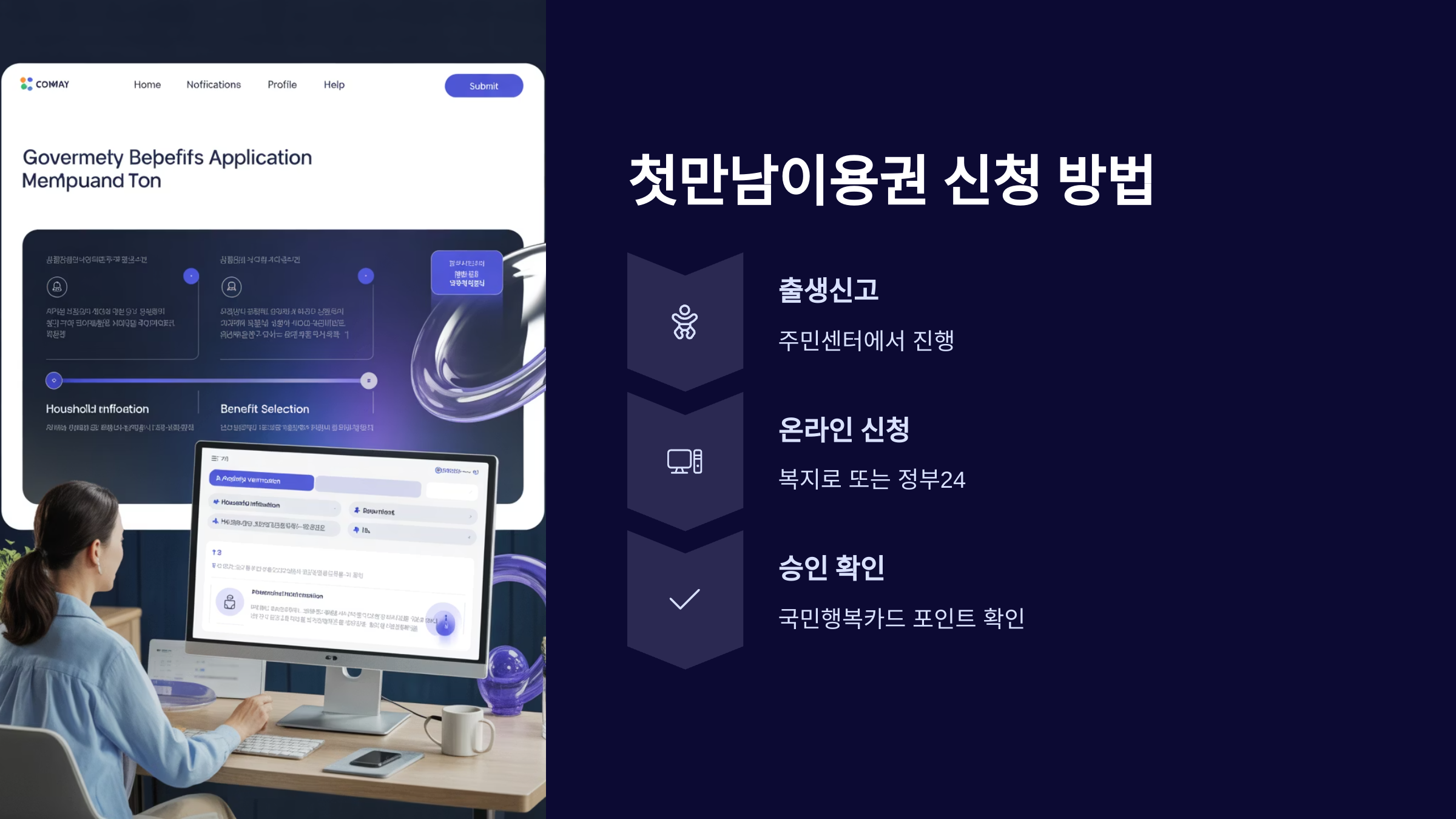 출생신고와 동시에 첫만남이용권, 부모급여, 아동수당, 양육수당까지 한 번에 신청할 수 있는 서비스입니다.