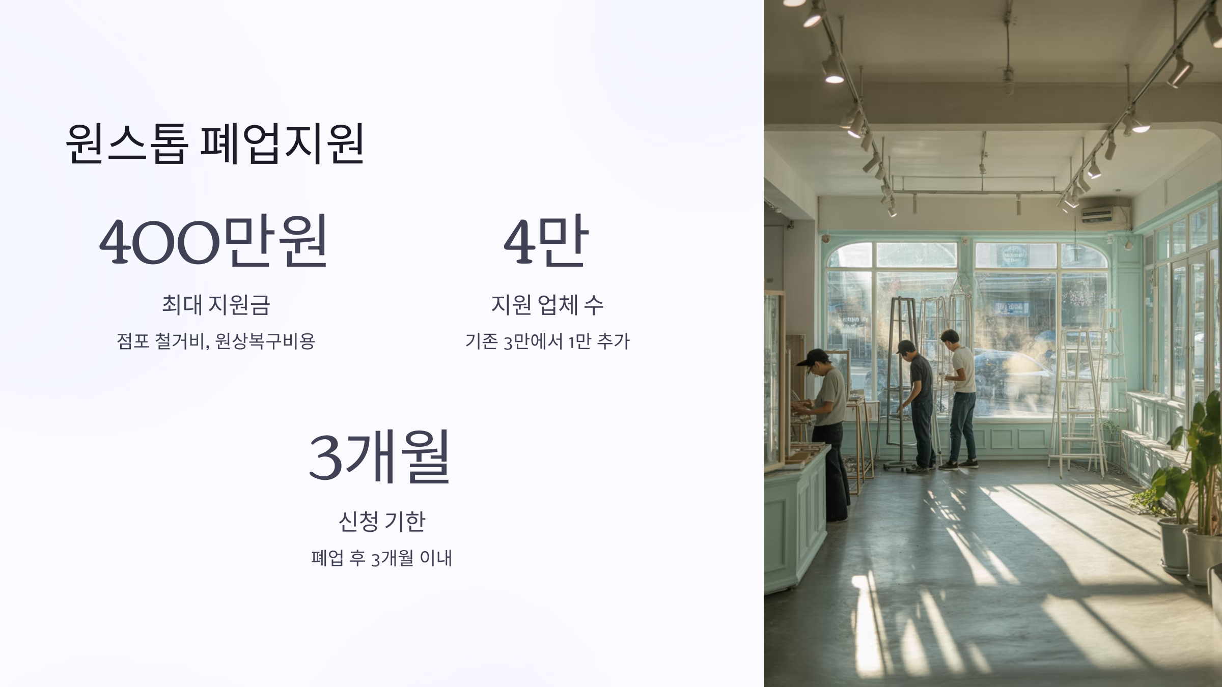 🧱 1. 원스톱 폐업지원 – 점포 철거비 최대 400만 원