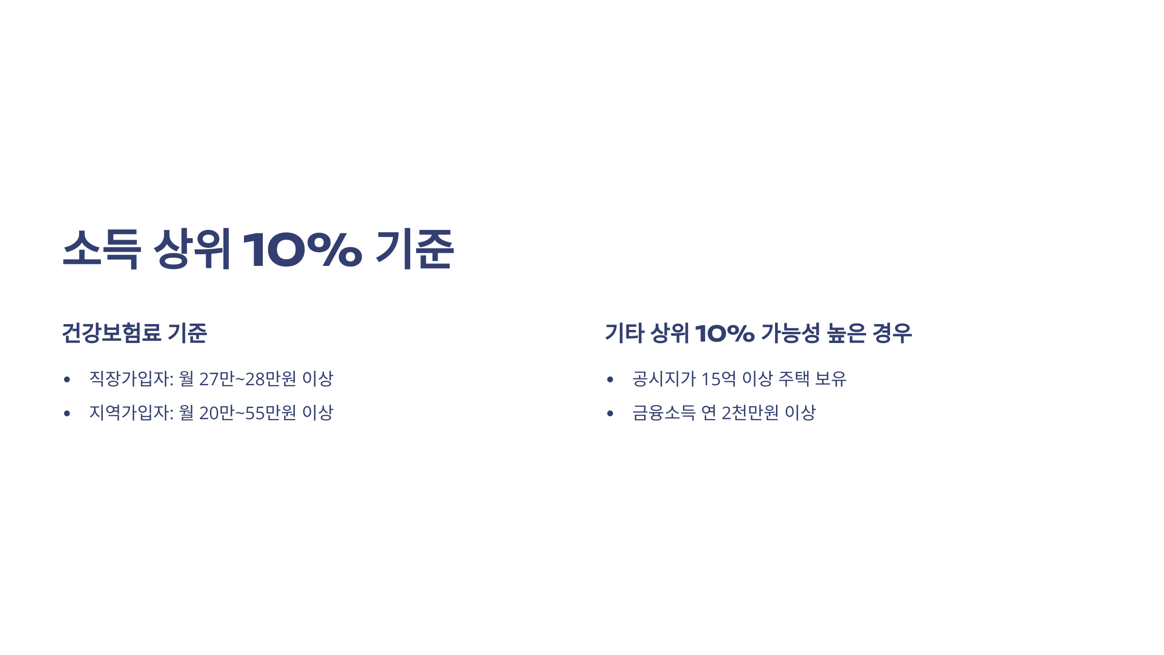 - 그 외 공시지가 15억 이상 주택 보유자, 금융소득 연 2천만 원 이상자 등은 상위 10%일 가능성 높음