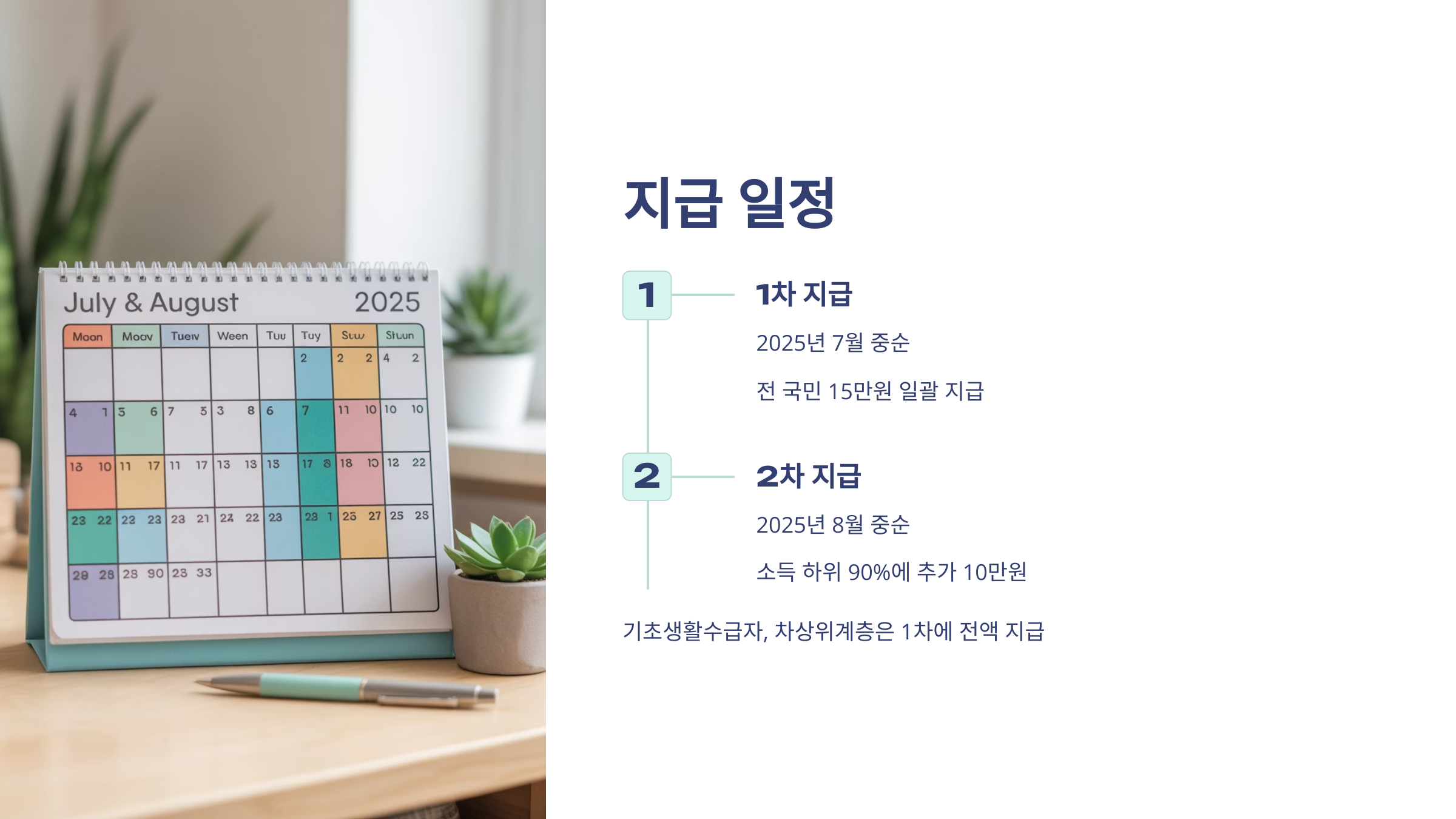 → 전 국민에게 15만 원 일괄 지급 - 2차 지급: 2025년 8월 중순