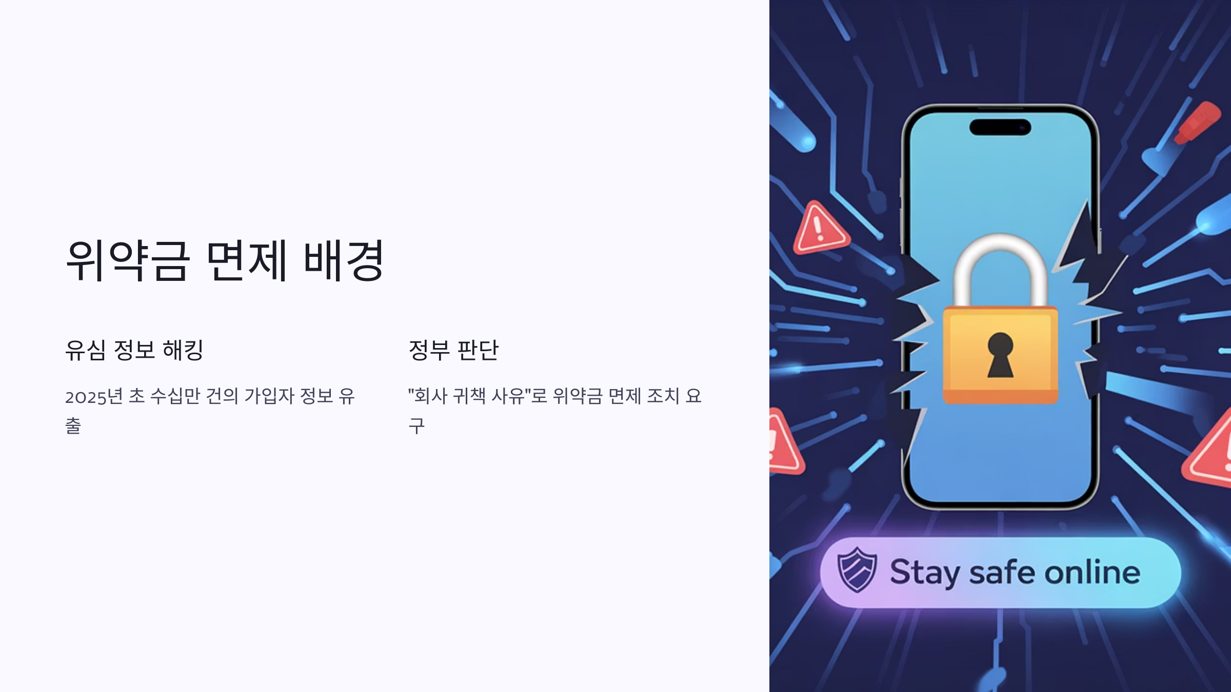 정부(과학기술정보통신부)는 이를 “회사 귀책 사유”로 판단하며, SKT에 공식적으로 위약금 면제 조치를 요구했습니다. 이는 SKT가 약관 제43조의 고객 보호 조항을 제대로 이행하지 못했기 때문입니다.