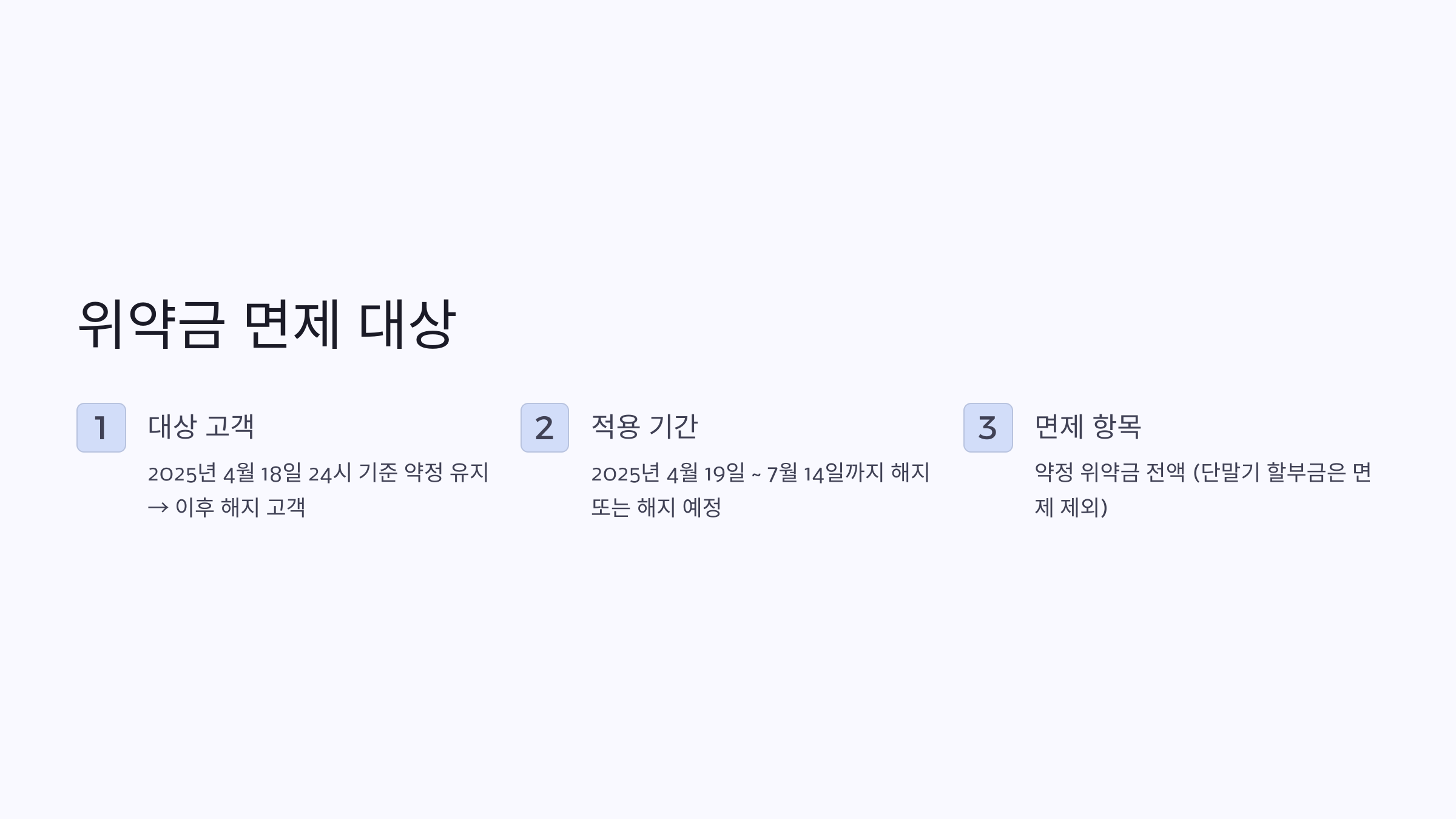 | 대상 | 2025년 4월 18일 24시 기준 약정 유지 → 이후 해지(예정 포함) 고객 |